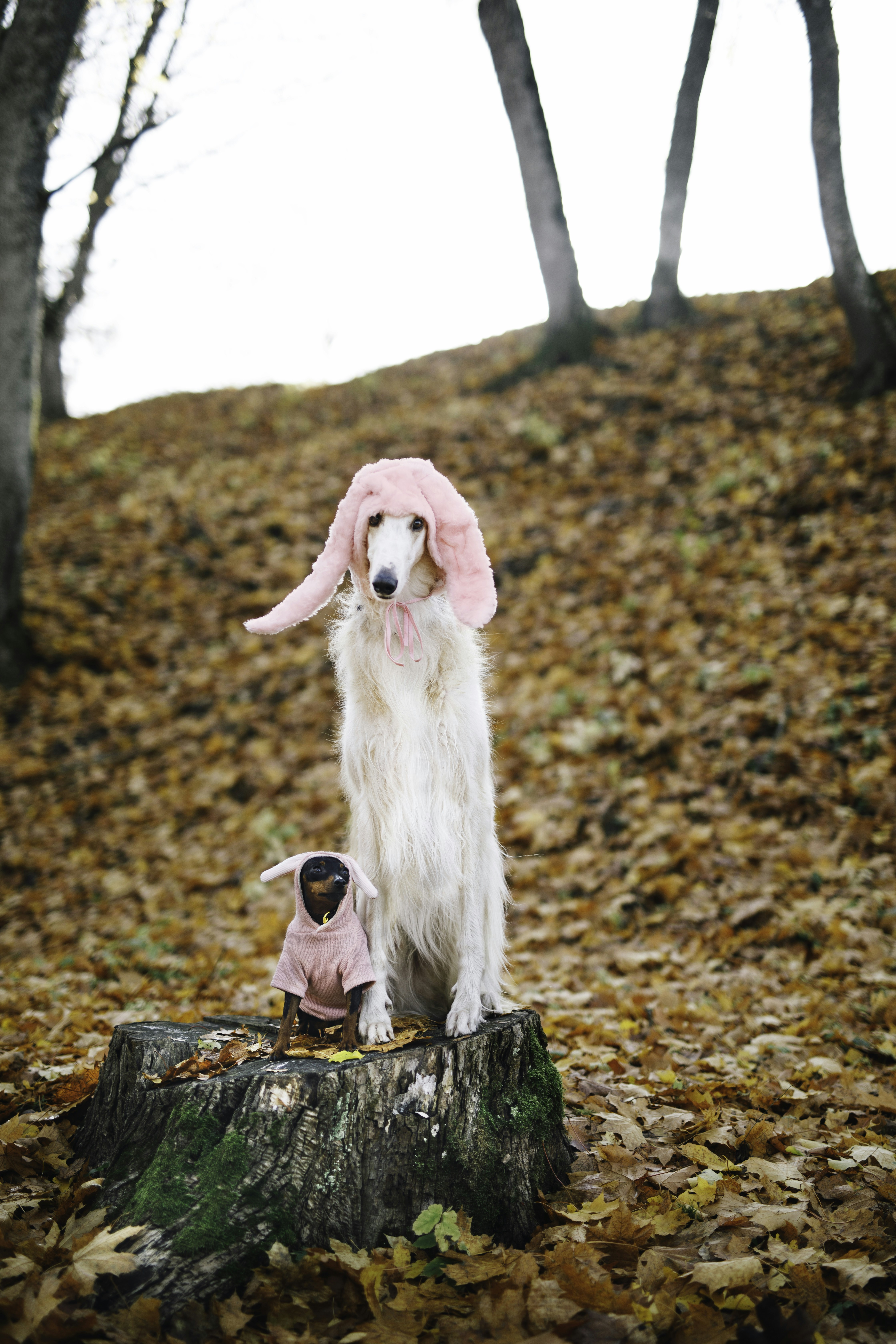 Borzois are huge, calm dogs. Smart and independent, it may be obstinate and hard to teach. As hunting dogs, they have a high prey drive
